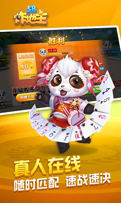 58炸地主——不花钱的、正宗斗地主!2020年度超火爆、完全不花钱的斗地主游戏,千万斗地主用户休闲娱乐的最佳选择,把压力和烦恼统统炸飞。★★★玩法多样★★★经典叫地主、欢乐叫三分、癞子斗地主、不洗牌玩法、大奖赛,玩法丰富,绿色益脑,满屏金币对局爽翻天。★★★画质精美★★★精致场景、体验流畅,操作淋漓尽致,让你享受一流的视觉体验。★★★公平竞技★★★....展开收起
