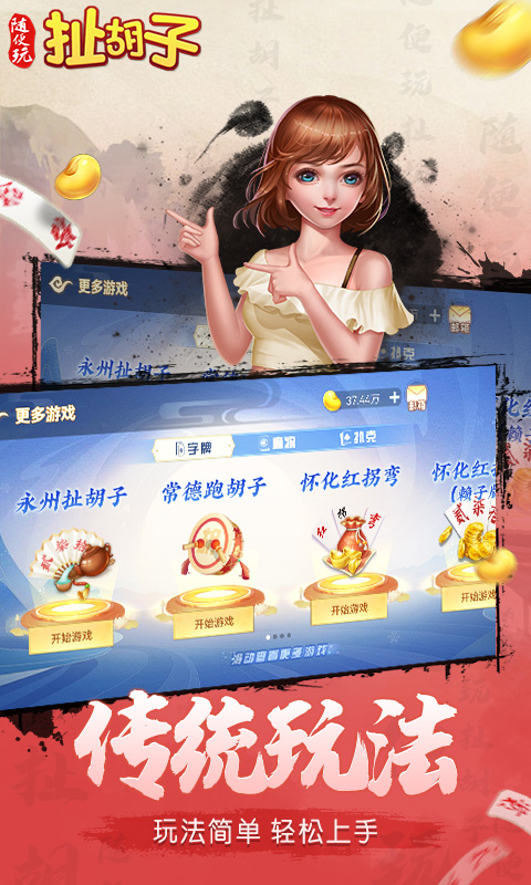 地道永州扯胡子! 对局流畅不卡顿!画面升级超清晰!家乡玩法超过瘾! 超多福利,登陆就送金币大礼,更多丰厚奖励等你来拿! 扯胡子是流行于湖南永州地区的一种字牌游戏。扯胡子包括一到十,壹到拾,再加两张王牌,一共82张牌,3个玩家每人分别抓20张牌,通过吃、碰、提等方式,使手牌按照相关规定的牌型条件胡牌。扯胡子是一款对抗强、玩法灵活多变,规矩严谨的竞技游戏。 扯胡子是流行于湖南永州地区的一种字牌游戏。扯胡子包括一到十,壹到拾,再加两张王牌,一共82张牌,3个玩家每人分别抓20张牌,通过吃、碰、提等方式,使手牌按照相关规定的牌型条件胡牌。扯胡子是一款对抗强、玩法灵活多变,规矩严谨的竞技游戏。...展开收起