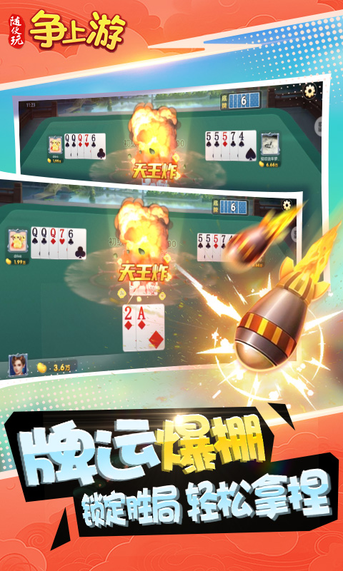 ★永久免费:免费下载,实时领取免费任务,活动,快速变土豪。 ★省电省流量:全面优化,手机不发烫,省钱省心,还送流量哦 ★快速游戏:万人同时在线,秒匹配。 ★特色音效:本地方言报牌,诙谐有趣。 ★精美画面:真实麻将牌桌,舒适操作,五星体验。 ★超多奖品:活动、任务、福利送不停,多种奖品等你拿,玩游戏更带劲! 随便玩关牌为随便玩网络新推出一款棋牌类游戏。该游戏起源于江苏浙江一带,现已风靡全国,玩法新 鲜刺激,让您畅想棋牌游戏的乐趣! 游戏规则:由3名玩家使用一副牌,去掉大小王,去掉三张2,三张A,三张K,两张Q,共41张,双方各发17张。(留黑桃2;黑桃A; 黑桃k,黑桃红桃Q)剩余的7张当底牌,就可以出牌了。出牌的规则其实也很简单,那就是抓到红桃3的先出,如果二人都没有抓到, 那么则抓到红桃4的先出……依次类推。...展开收起