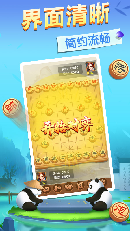 象棋对战是一款老少皆宜的对弈游戏,画面清新自然,操作简单流畅。 横马跳卒,车攻炮轰,你来我往,难解难分,一起体验象棋文化的博大精深。
