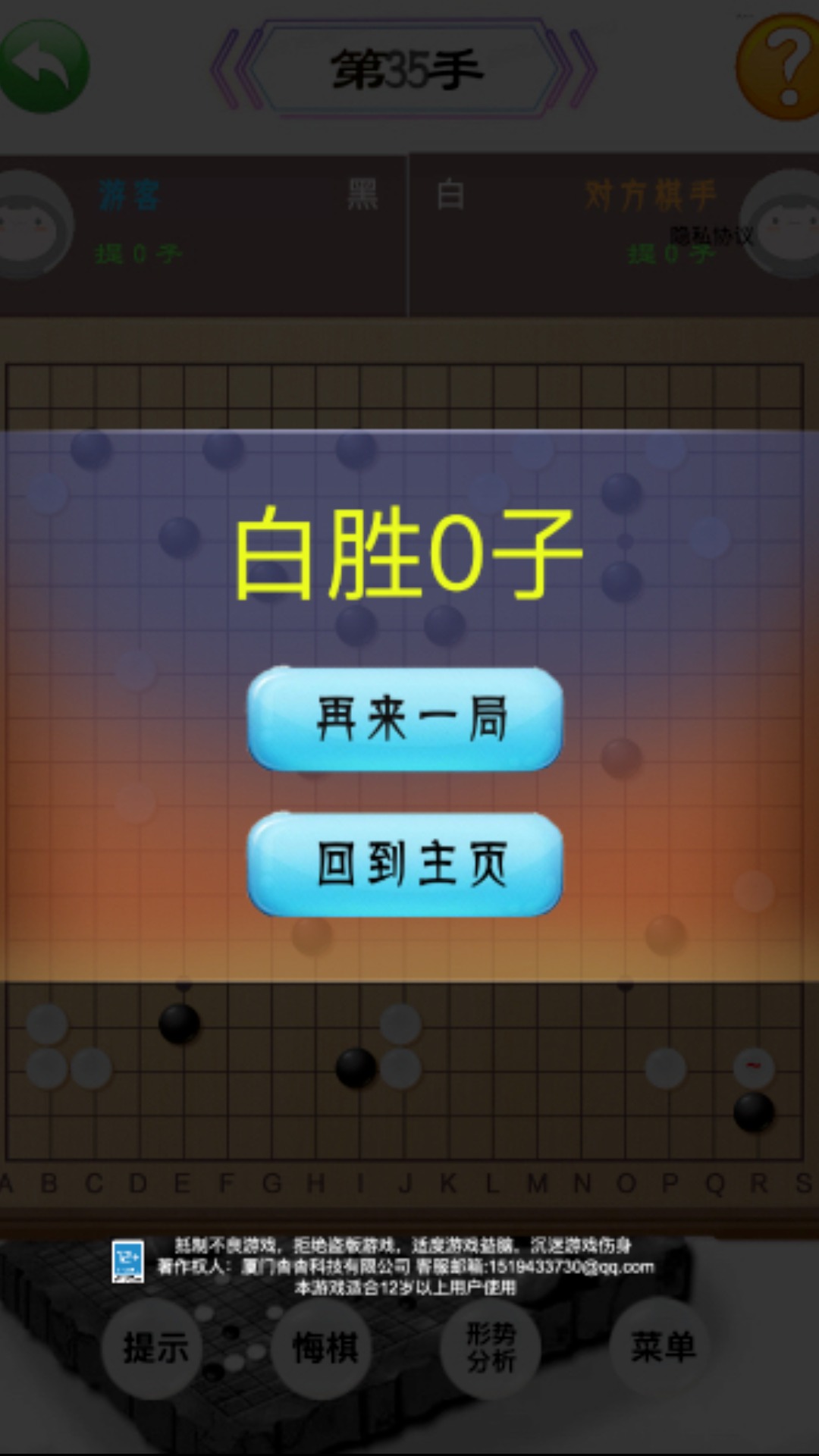围棋,一种策略性棋类游戏,中国古时称“弈”,属琴棋书画四艺之一。 围棋起源于中国,蕴含着中华文化的丰富内涵,是中国文化与文明的体现。围棋游戏,让您在掌上领略中华五千年的传统文化。 从初级房到高级房,各种对手任你选,超智能AI,单机也能提升棋力,界面精美,快来开启你的围棋之路吧!