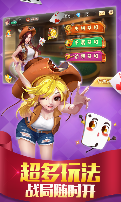 ·玩法多样!双扣斗地主三扣一! ·任务之路!完成任务日进斗金! ·精彩赛事!比赛竞技夺取大奖! ·超优体验!多重好礼免费速领!...展开收起