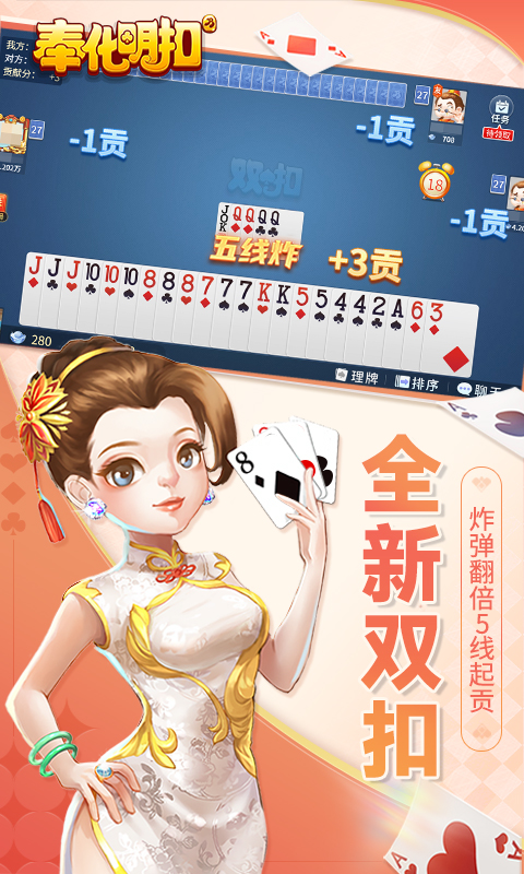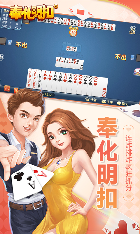 阿拉宁波人自己的游戏!甬城百万玩家,超燃双扣对决! ——————福利满满—————— 每日签到领金币,游戏对局送奖券~ ——————地道玩法—————— 明牌对战,疯狂抓分,排炸爽翻天! ——————电视赛事—————— 高手争霸,实力比拼,冠军直通《第5擂台》电视赛
