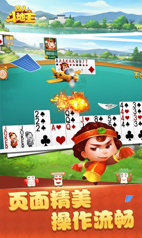 四人斗地主是风靡全国的棋牌四人游戏,流行于江苏、河南、广东、湖北、安徽、山东、四川、浙江、广东等地。有了这款四人斗地主,再也不用单机斗地主,真人联网、万人在线,真人天天斗地主。界面精美,操作流畅,与好友一起欢乐斗地主吧!