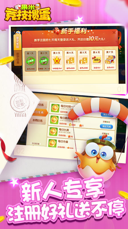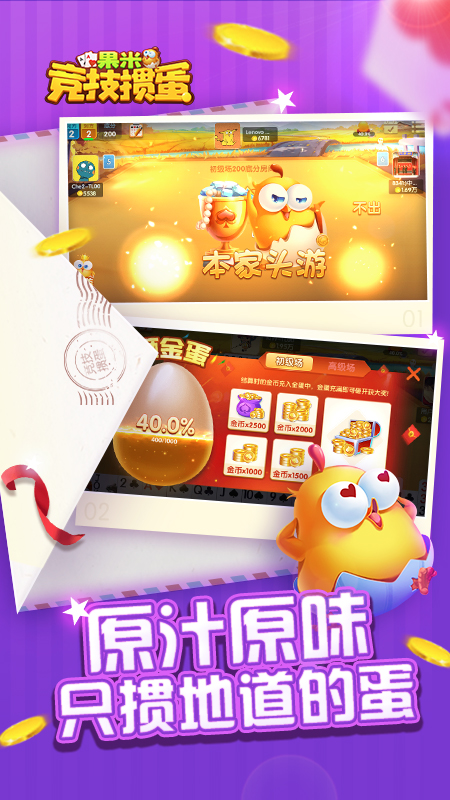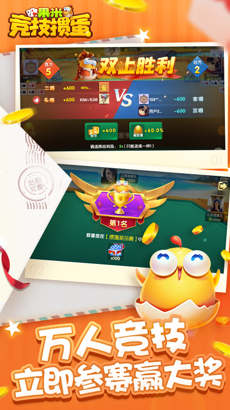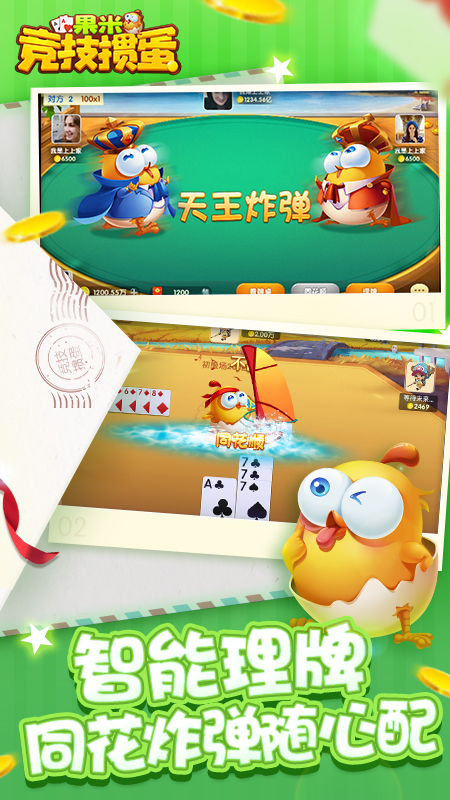 江苏、安徽等地最为火爆的扑克游戏,每日都有比赛,奖品丰富; 玩法地道,操作流畅。万人竞技,一键登录。 果米出品的掼蛋手机版画面精美,操作流畅,玩法地道,奖品丰富,让您随时随地畅享棋牌乐趣。 游戏特色: 【公平竞技】 万人竞技,公平公正,专业防作弊系统。 【精彩赛事】 每日各种福利比赛,极速开赛。 【福利丰厚】 注册即送新人好礼,0付费即可领取各大福利! 掼蛋是一种起源于江苏淮安的扑克游戏,由地方棋牌“跑的快”和“八十分(升级)”发展演化而来。游戏采用对家合作四人竞赛,输赢升级的方式进行。...展开收起