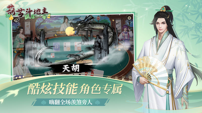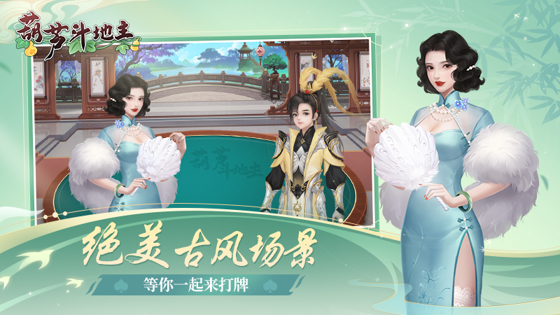 视觉创新,古风绝美场景,小姐姐身着汉服陪你打牌。 各大主播倾力推荐《葫芦斗地主》,主播最爱【血流七宝牌】,原创“扑克胡牌”新玩法,刺激胡牌特效不停!