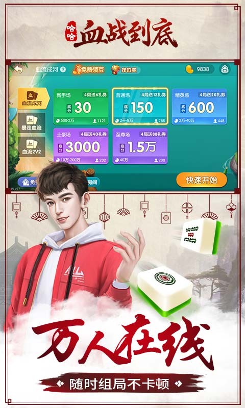 5、省流量,配桌速度快,真人线上对战,掌心里的麻将游戏!...展开收起