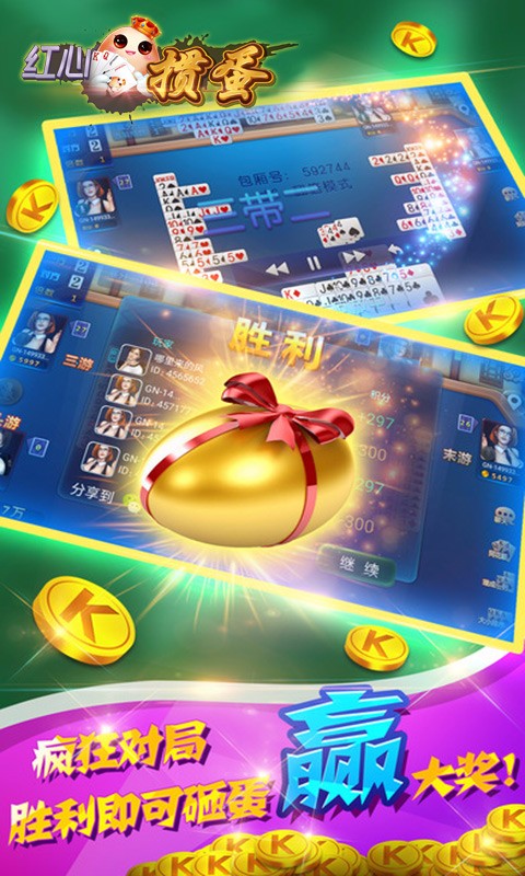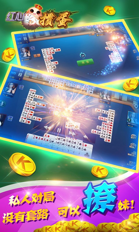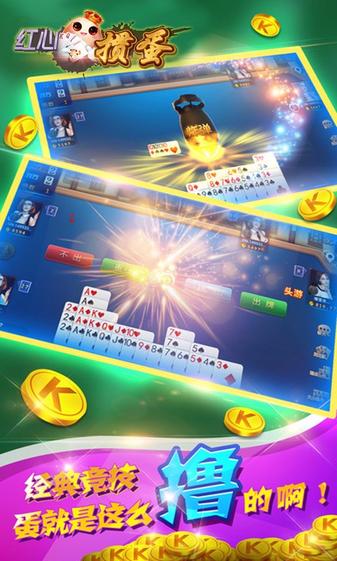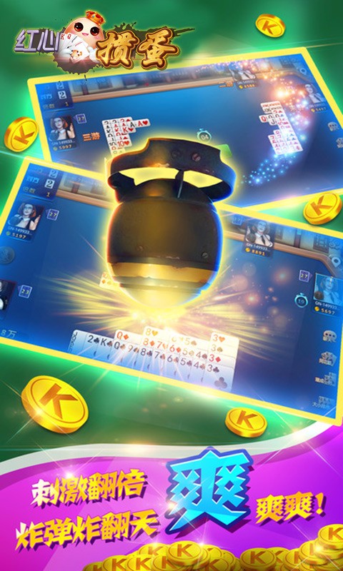 红心掼蛋又叫K3K掼蛋,风靡江苏、安徽各地地方棋牌打造的一款益智类棋牌扑克游戏。 【私人包厢一键语音】新增包厢创建功能,让你微信好友随时随地约,一键语音,畅聊到天亮! 【好友组队赢大礼 】红心掼蛋游戏不仅让你随时随地享受与好友互动的乐趣,还能让你和好友一起组队报名参加大奖赛,海量话费等你赢。 【免费游戏赠送多】登录送,绑定送,签到送,分享好友送…..只要你敢来,我们就敢送!...展开收起