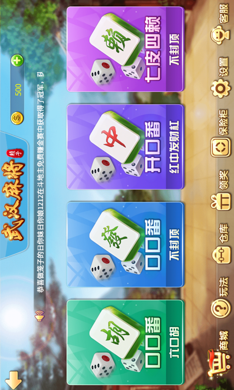 地道的武汉麻将,红中赖子杠,七皮四赖不封顶,红中发财杠玩法,口口番不封顶玩法,竞技场赢大奖,话费多多等您来拿!