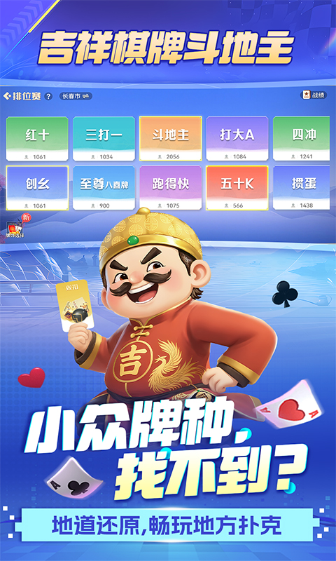 【地方特色,丰富多样】 八喜牌、斗地主、东北刨幺、跑得快、浙江掼蛋、山东够级......全国扑克玩法一应俱全,百玩不厌,精彩纷呈!体验地道地方玩法,全国牌友一决高下,尽享牌技比拼乐趣! 【福利多多,豪礼直送】 登录即送丰厚豪礼,海量金币福利等您来拿! 签到即送、活动狂送,福利不停歇!让您玩得尽兴,赢得开心! 【流畅特效,沉浸体验】 超高画质,流畅动画,精彩特效,呈现与众不同的视觉享受!多种主题场景随心切换,绿色无广告,沉浸式打牌,尽享棋牌乐趣! 【真人牌局,公平竞技】 全国真人牌友实时对战,告别呆板机器人,真正的公平竞技!智能匹配机制,找到牌技同样高超的对手,越打越开心! 牌友们都在等您上线,快来共赴这场智慧与策略的比拼吧!...展开收起