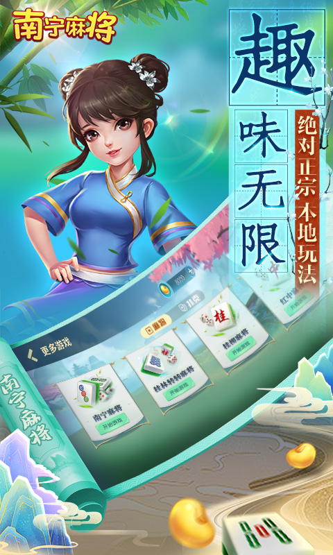 超级正宗, 咔咔纯正广西麻将 新增桂林转转麻将、桂柳麻将、桂林飞飞、桂林跑牌等玩法 实时赛事, 打比赛奖品多多 鬼牌在手, 牌桌上没对手 多种玩法,刺激风趣嗨翻天。 丰富福利活动,玩家互动更过瘾。 ★快速游戏:独特玩家撮合机制,万人在线,随时不缺人的极速游戏 ★真实的玩牌体验,考研技术与配合的技巧 ★省电省流量:全面优化,省钱省心,还送流量哦 ★超大牌面:粗指头姑娘、汉子也不怕点错牌 ★精美画面:打牌也要视觉享受 ★特色音效:诙谐有趣,只求博您一笑 ★超多奖品:活动、任务、胡牌或奖,多种奖品等您来赢,玩游戏更带劲!南宁麻将是随便玩系列力作,南宁麻将流行于广西,南宁 深受广大棋牌爱好者喜爱,游戏规则:9分起胡,包含清一色、碰碰胡、全求人等多种胡牌牌型,有封胡、有买马,富有别致趣味性。...展开收起