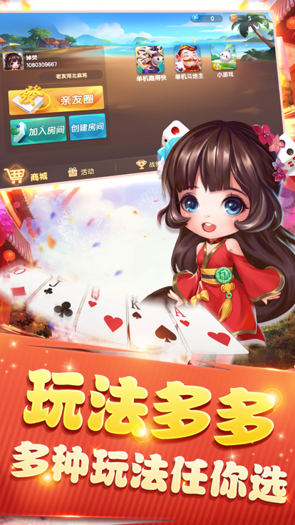 老友地方游戏是一款独具地方特色的休闲棋牌游戏,玩法多种多样,可以满足不同地区玩家的需求。最具特色的地方配音,让你回味纯正方言。极致精美画面,酷炫的特效,让你可以在休闲棋牌的同时还能获得别样的视听享受。