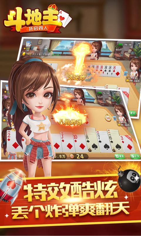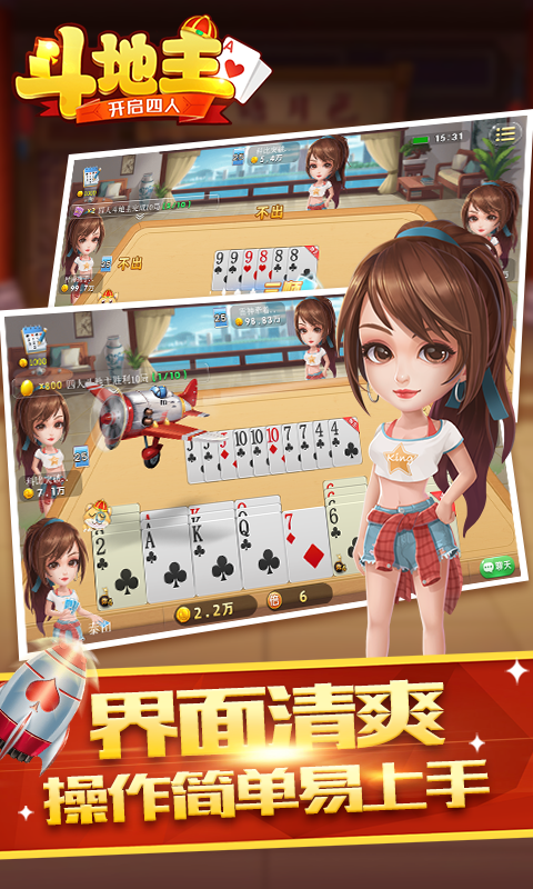 1、正宗四人斗地主打法,真人实战。 2、人性的操作,充分考虑玩家的使用习惯,操作简单,轻松上手。 3、玩家同场竞技,更酷游戏体验。 4、每天玩局四人斗地主,发现同乡好友。 5、人气火爆的手机扑克游戏,随时随地随便玩...展开收起
