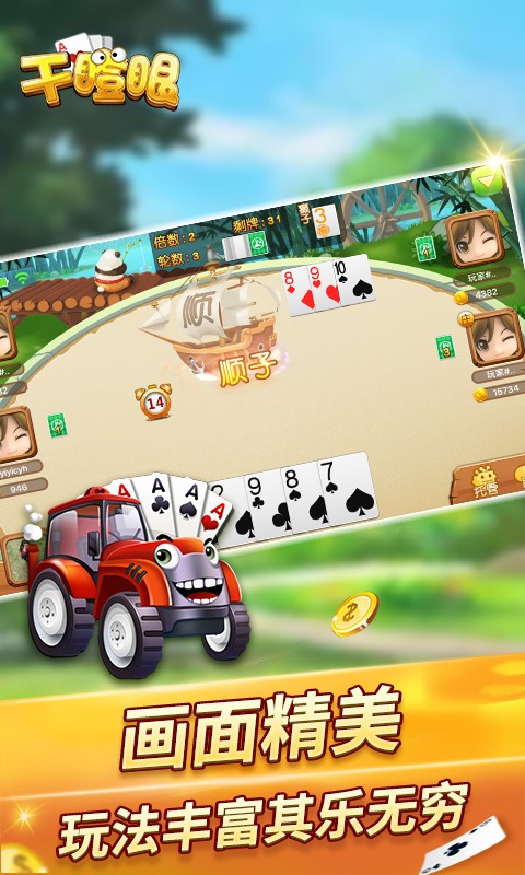 干瞪眼是现在最流行的扑克牌游戏,比斗地主刺激10倍。2-5人都能玩,在普通的干瞪眼玩法基础上,加入了癞子牌的当地特色玩法,使得游戏过程中牌局变化更多,既有趣又刺激。是在茶余饭后度过闲暇时光的最佳选择。