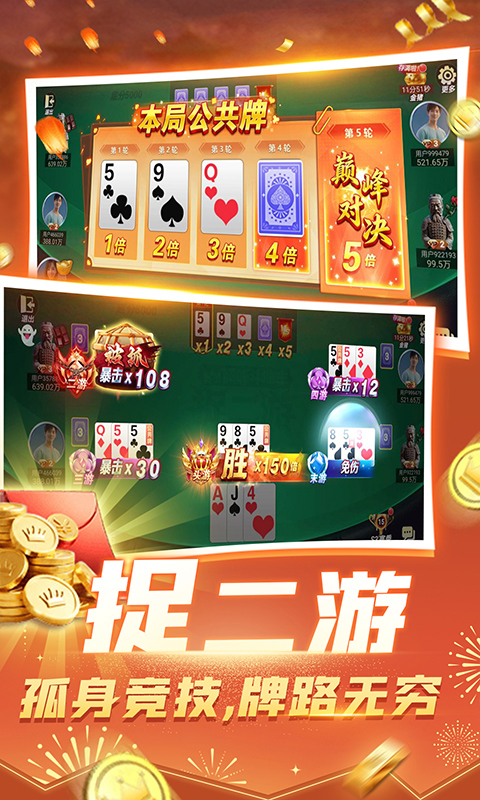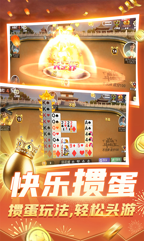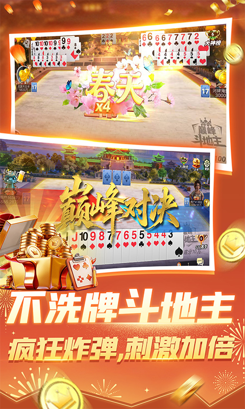 《巅峰斗地主》—— 一款集合斗地主与掼蛋两大国民棋牌玩法的精品手游!我们还原经典,更致力于为你打造刺激、公平、福利满满的极致游戏体验。 【双王牌玩法,畅享双倍乐趣】 经典掼蛋,原汁原味 完美还原传统掼蛋玩法,随机级牌、炸弹频出,底分疯狂加倍!胜负悬念等你揭晓,每局都心跳加速。 【欢乐斗地主,焕新归来】 新增高质感音效、炫酷动画,出牌爽快淋漓。创新“不洗牌”模式,炸弹更多、节奏更快,策略与爽感双双爆表! 【丰厚奖励拿到手软】 登录即送金币,每日签到、完成任务领好礼,海量金币送不停!不花钱也能畅玩到底。完成成就更可领取福卡、特效、专属入场仪式等豪华奖励。 【公平公正,极致对局】 智能匹配,秒速开局,拒绝“猪队友”。全新视觉升级,操作流畅顺滑,每场对局都公平竞技。 更多惊喜,等你来赢!...展开收起