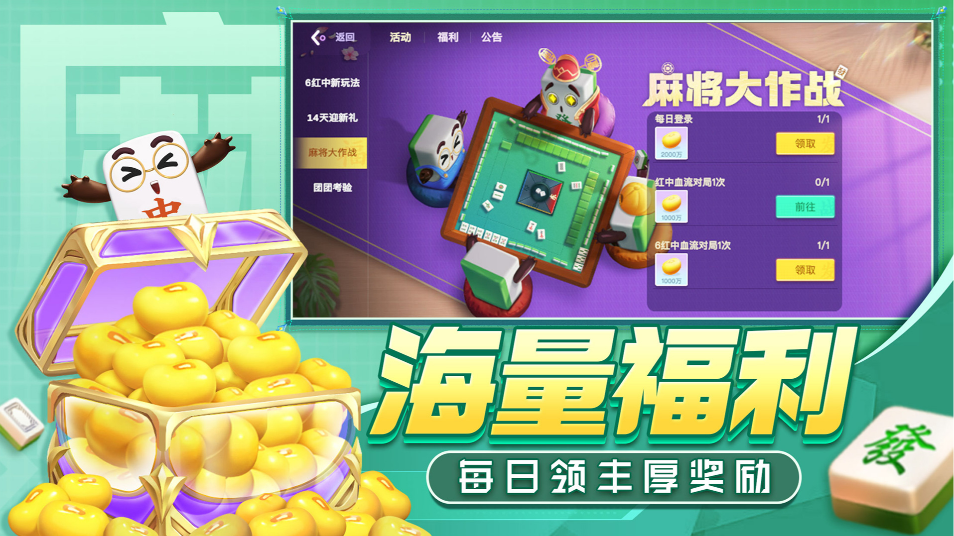 【玩法经典 全民搓麻】主打刺激四川麻将换三张、血流红中、金玉满堂、血流成河等,红中赖子连胡不停,千万番型享受刺激爽快的胡牌乐趣!