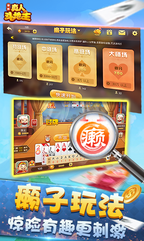 【纯正经典玩法】原汁原味的经典三人斗地主、刺激爽快的癞子模式,让你对局乐趣精彩享不停!