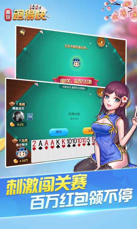 玩牌就有红包领取,闯关赛红包多多,有大必出,看谁跑的快。