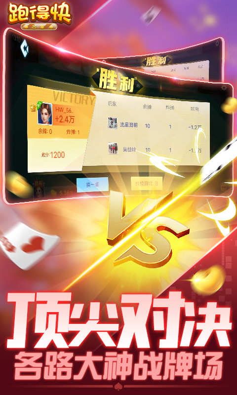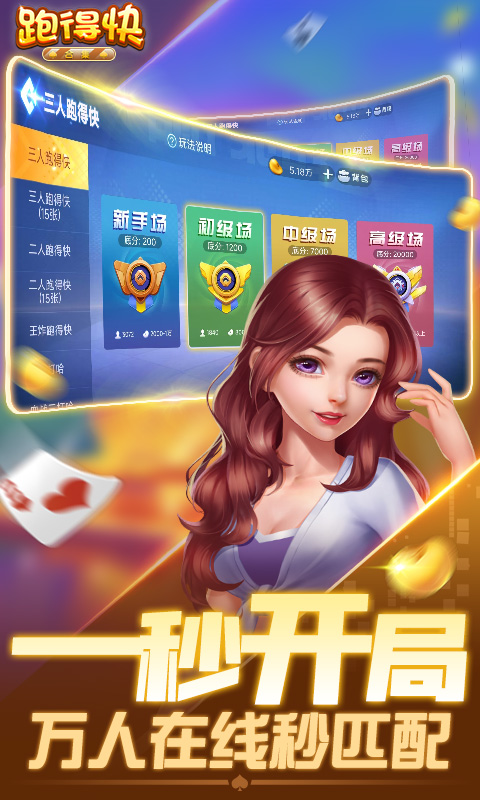 全新玩豆场,新鲜体验欢乐升级。 以牌会友,斗智斗勇乐趣无穷。 一秒开局,看谁跑得快! 一把全关,分秒腰缠万贯。 随便玩跑得快关牌合集系列,包含经典跑得快,江浙流行二人关牌,节奏超快的15张三人关牌,为广大玩家量身定做。 跑得快又称为关牌、湖南跑得快、锄大地、争上游,单机跑得快,是最常见易学的玩法。流行于湖南一带,盛行于浙江, 江西,广东,湖北一带。在北方又叫锄大地。 随便玩跑得快合集,包含多种玩法,地道跑得快有炸弹就有米,二人关牌地道江浙味回忆家乡味,三人关牌15张玩法比跑得快更惊险更刺激,助你瞬间白富美。 随便玩跑得快合集玩法多样,老少皆宜,玩法比斗地主简单 ,过程精彩又刺激。 随便玩跑得快合集独家特色 1.选牌系统智能选牌,简单便捷。 2.快速游戏:独特玩家撮合机制,万人在线,随时不缺人的极速游戏 3.真实的玩牌体验,考验技术与配合的技巧 4.省电省流量:全面优化,省钱省心省流量 5.超大牌面:粗指头姑娘、汉子也不怕点错牌 6.精美画面:打牌也要视觉享受 7.特色音效:诙谐有趣,只求博您一笑...展开收起