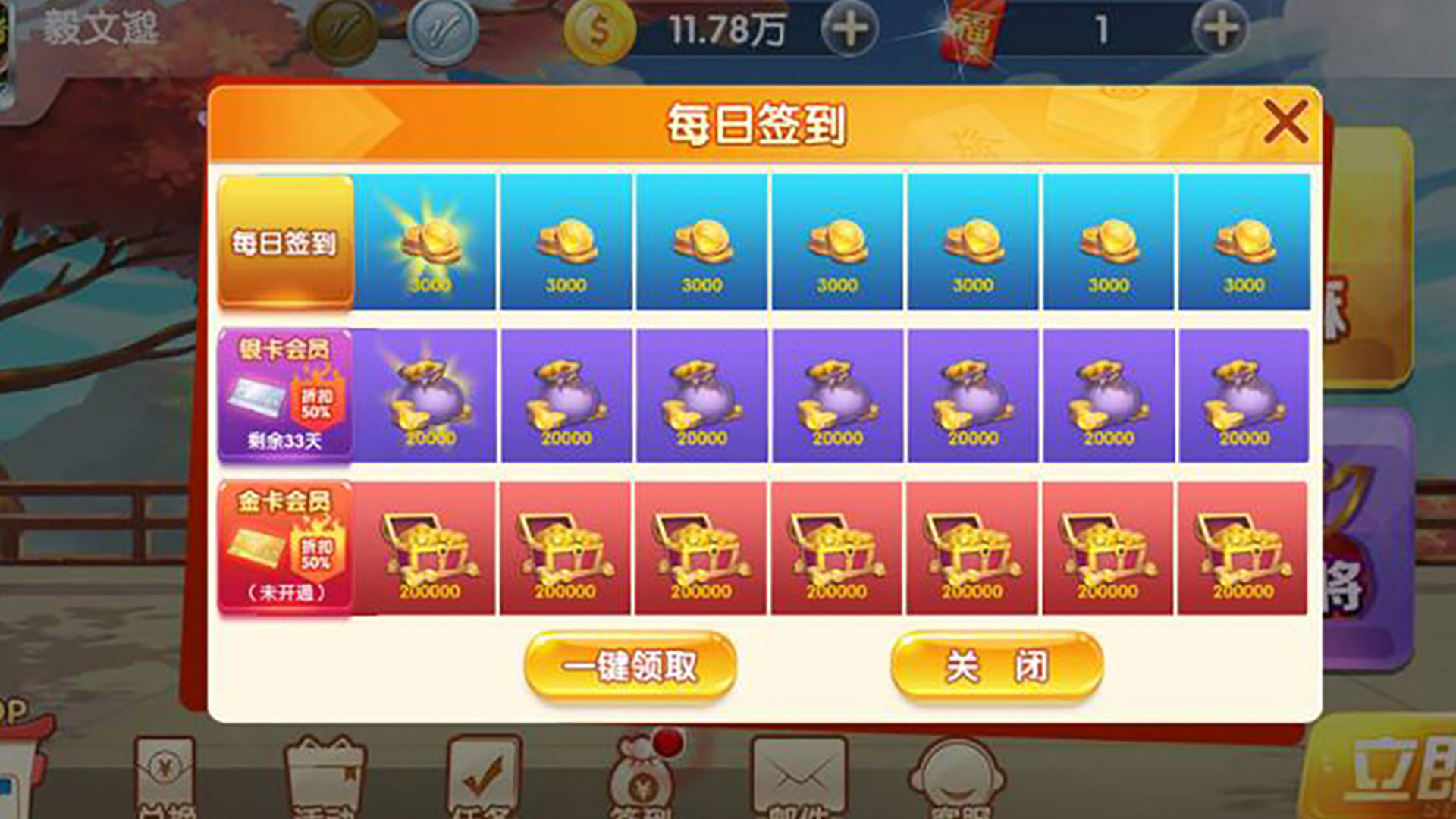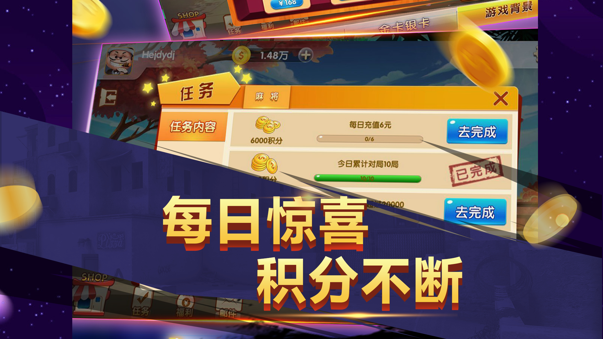 ● 每天登陆送豪礼,连续登陆送更多,诚意满满,积分不足自动发放,让您免费打牌
