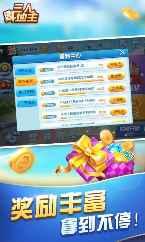 每日登录、每日福利送金币,破产救济金,更有话费好礼哦!