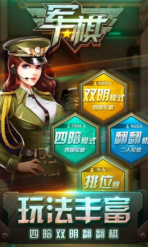 四国军棋、翻翻棋、军棋三打一、陆战棋,选择自己感兴趣的。