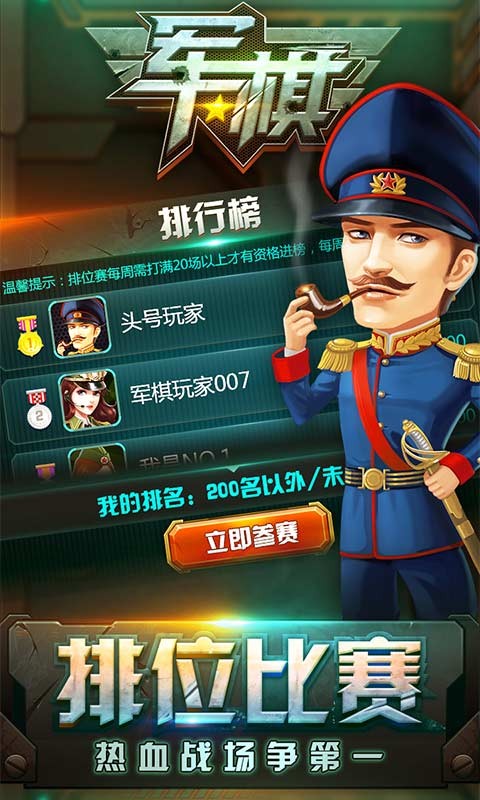 军棋(junqi,又称陆战棋,军棋翻翻),画质精美,原汁原味,游戏融入了部分现代场景角色元素,是同城游精心打造的一款休闲对战棋类游戏,众多棋类爱好者首选的军棋游戏。