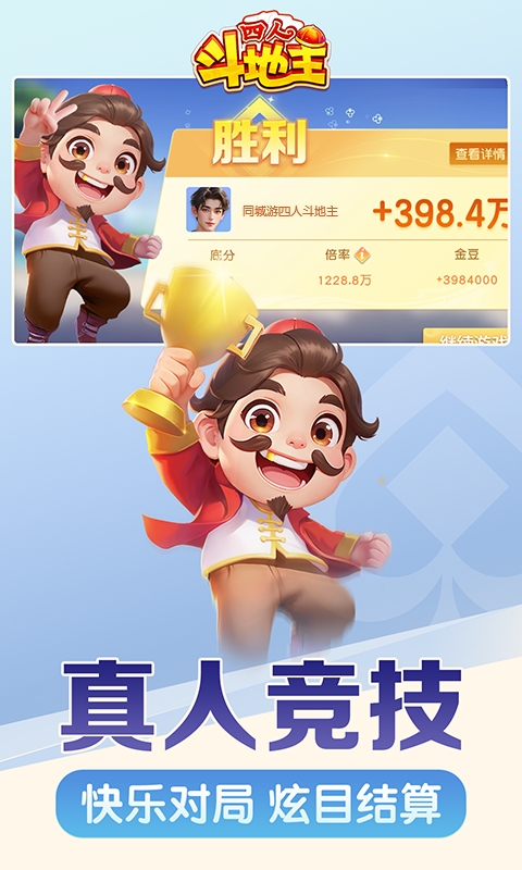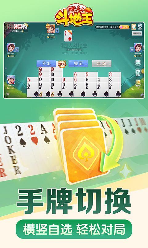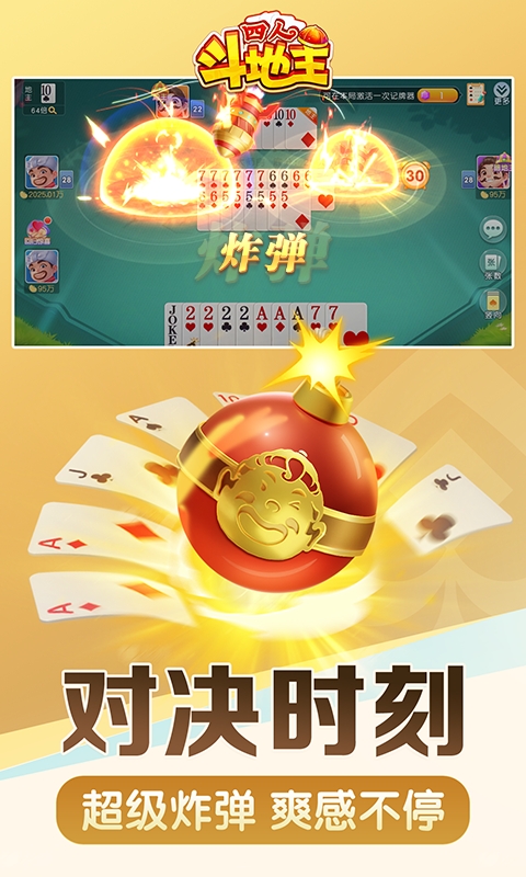 含三四五人斗地主玩法! 四人斗地主随机配对双模式,更有苏南特色废炸规则任你挑选。同城游四人斗地主画面精美,操作流畅,流量节省,玩法经典,让您随时随地畅享棋牌乐趣。 【规则地道,画面精美】 四人斗地主包含经典模式、废炸规则模式,玩法多变,精彩升级! 【高手在线,快速开局】 四人斗地主聚集了众多四人斗地主高手,实时在线对战,快速开局,畅快对决,体验更舒适! 【任务升级,精彩加倍】 新增对局任务、连胜任务,多种任务共行,积分加倍,精彩不停歇!...展开收起