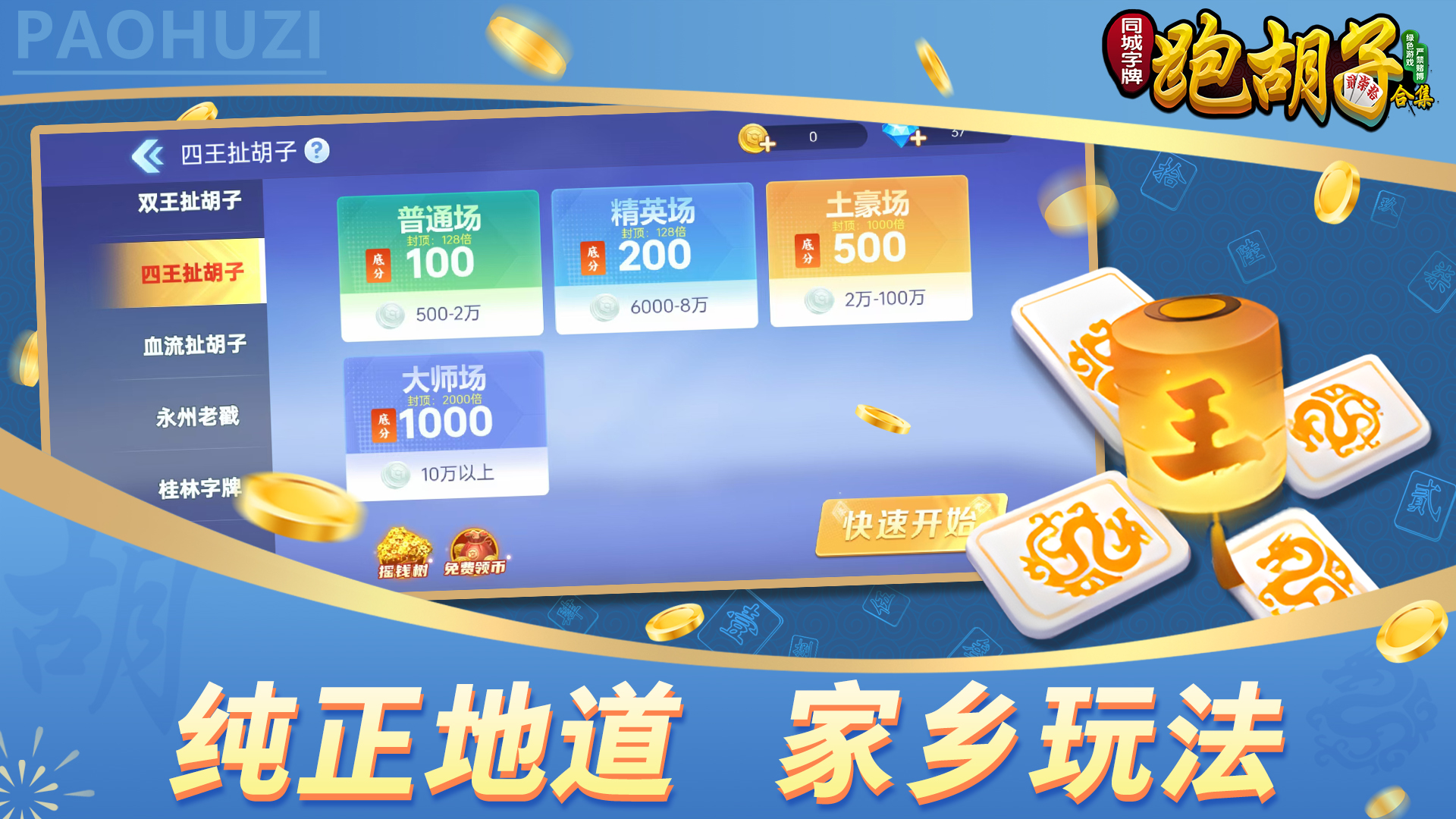 汇集家乡跑胡子字牌玩法,传承地方特色,休闲益智,千万老乡同场竞技。
