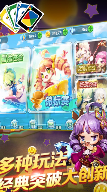优诺牌是一款备受玩家喜爱的卡牌手游,此作品由网易制作,多原版桌游还原度极高。经典桌游的线上制作,绚丽画风活泼音乐,感受与好友、全球玩家一起竞技的快乐,一起加入游戏吧!