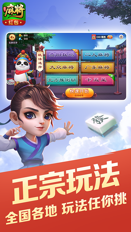 覆盖全国主流地方麻将玩法,刺激四川血流换三张,血战,湖北卡五星麻将,贵阳捉鸡,大众麻将、地道广东麻将、二人麻将,各地玩法应有尽有!