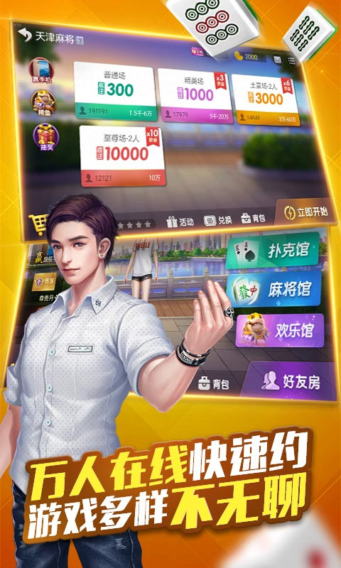 1、免房卡,亲友约局不花钱,房间玩法自定义,安全稳定无作弊。 2、正宗天津麻将玩法、砸六家,本地特色玩法应有尽有,规则正宗地道无偏差! 3、万人在线金币场,天津本地人都在玩,快速约局,随时随地想怎么玩就怎么玩。 4、新增擂台赛、争夺地方排行榜,抢手机大奖! 5、激情比赛场奖品丰富,赢话费、拿京东券! 6、丰富小游戏,轻松娱乐,打牌之余也不无聊。...展开收起