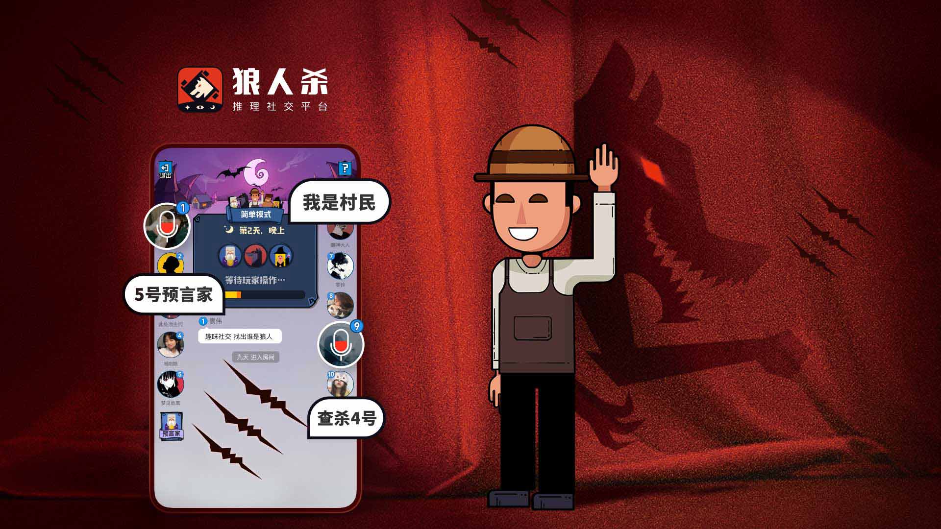 经典狼人杀回归,老朋友的新聚会!n花式板子、快速配对,为你找到对手和伙伴。n最流畅的实时语音功能,随时跳查杀。来一场谎言与推理的对抗吧!n比谁是卧底、你画我猜更有趣。许多明星大腕儿都在玩,想和里面的大神一样用推理PK谎言,用语音互飚演技,无奈找不到这么多志同道合的玩家?n我们可以满足你:n1、支持实时语音聊天,感受语言与逻辑的魅力。不论是躺着、坐着、趴着还是倒挂着,各种姿势,一边玩推理一边交友,嗨到停不下来!n2、快速匹配,独自一人在家也能玩,社交新方式,一起烧脑!n3、新手指引清晰易懂,萌新小白立即上手,秒变“老司机”。n4、趣味休闲房,轻松交友,浪漫互动,主播派对,你要的我都有! ...展开收起