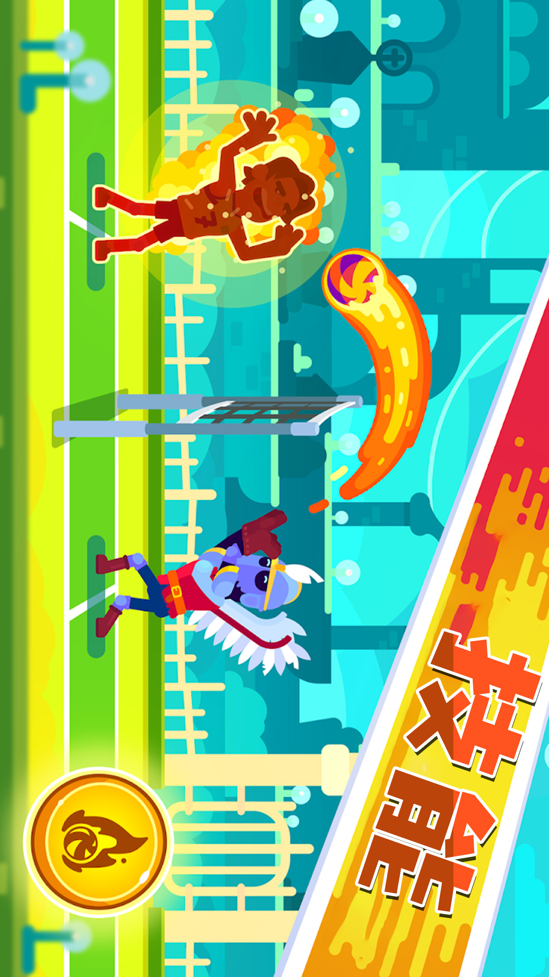 使用特殊的超级力量-火球,双球,甚至大块的石头-击败对手!