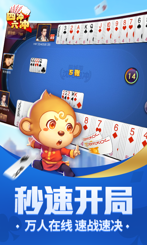 四冲、六冲双玩法,惊险刺激欢乐多。“四冲”起源于辽宁省沈阳地区,是沈阳地区特色的扑克玩法,深受当地群众喜爱。 游戏特色: 【玩法经典,规则地道】 同城游四冲包含四、六冲规则,完美复制线下玩法; 【真人手游,同城竞技】 四冲、六冲采用具有特色的沈阳棋牌玩法,尽享2V2、3V3对抗快感。 【一键配桌,畅玩不停】 同城游四冲数万四冲玩家实时在线,一秒开局,对局不需等! 【方言配音,搞笑俚语】 沈阳搞笑方言配音,妙语连珠,欢乐不断。...展开收起