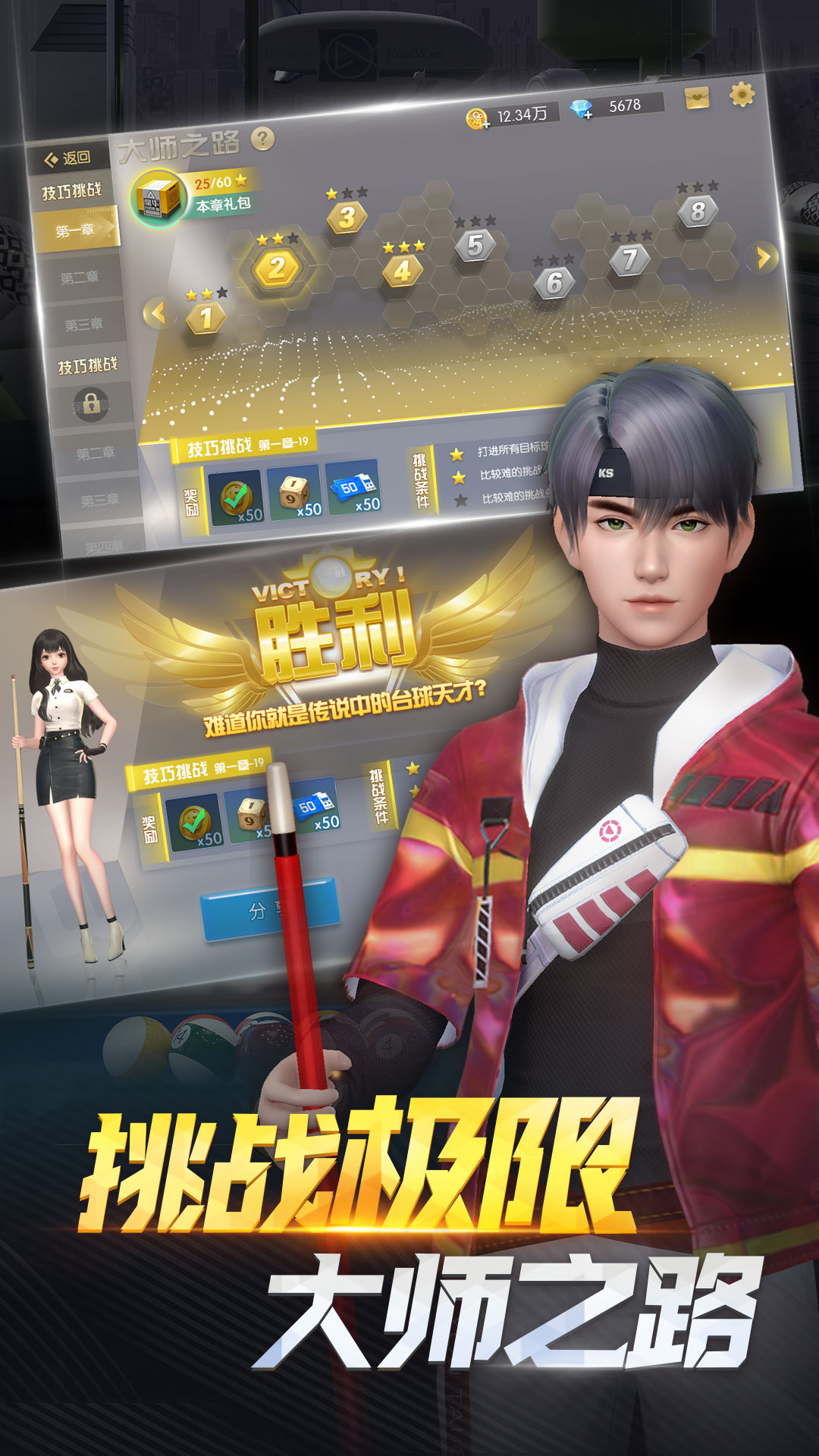 【国内真实3D桌球】 还原现实桌球玩法,配以真实物理参数,让广大桌球爱好者玩的得心应手,杆精利落; 【竞技对战】 游戏设有8球、9球、斯诺克、大师之路等玩法,玩家可以自由选择参与,并用自己精湛的技巧来获得丰厚的奖励; 【好友联机对战】 朋友之间开一局,一局解决不了问题就两局; 【绝美角色时装】 快来让台球小美教你怎么击球吧; 【酷炫球杆】 尖端巧粉,杆杆随心,游戏中配置多种属性、不同品质外形的球杆和球桌,超炫球技,彰显至尊身份...展开收起