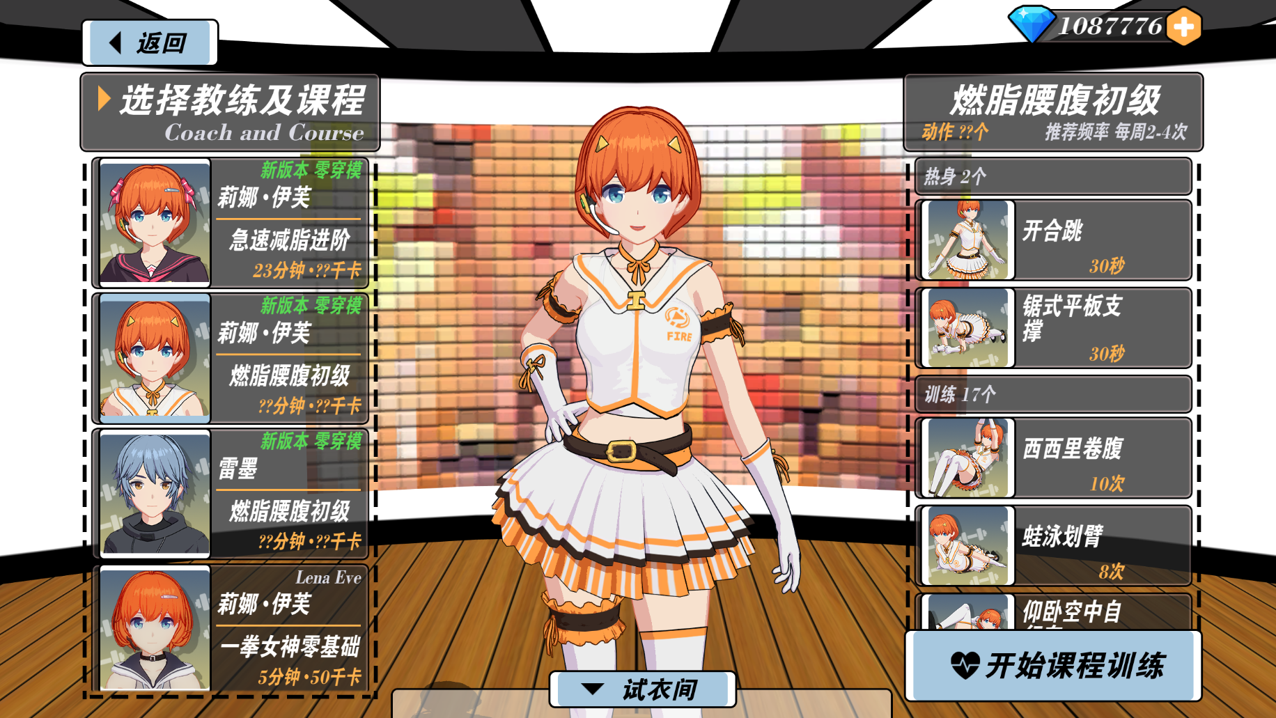 2021年9月版本更新内容:一、新增了【男教练雷墨】,在进入软件前,你甚至可以选择是否从软件删除男教练。二、【再次降低了钻石获取难度】,“打卡”加50钻,“训练任务”每个加30钻,“看广告”每次加30钻,一天最多可获得770钻石。三、【TapTap账号绑定功能】,再也不用私聊群主重置密码了。绑定之后,还可一键登陆软件,健身更快捷。你可以在【设置】中【退出当前账号】。四、【运动时,自由视角】,双指移动、双指缩放、单指旋转、甚至还可以锁定焦点,动作幅度再大,也能自动跟上动作。五、新增了【燃脂腰腹初级】课程。六、新增了莉娜【运动爱豆】、雷墨【运动男装】两套服装。