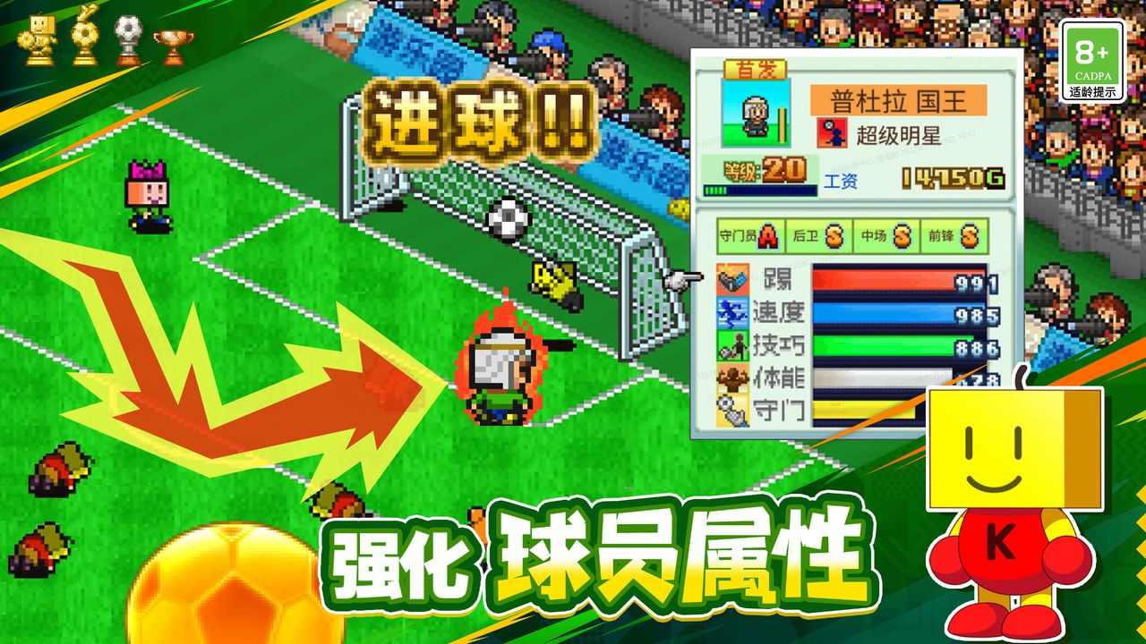 《冠军足球物语1》是一款以足球俱乐部为题材的模拟经营游戏,目标是打造属于自己的球队,带领足球队成为世界冠军!