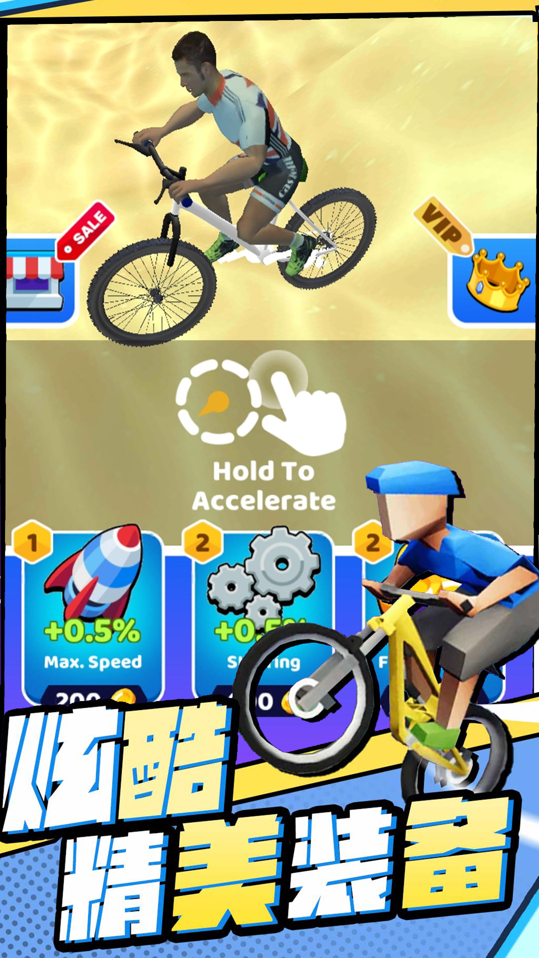 系好安全带,极限骑行开始!感受肾上腺素的飙升,沉浸在真正的自由骑行氛围中,欣赏数十个地点的壮丽景色 , 从白雪覆盖的山峰到阳光明媚的沙漠,每次闯关成功后还可以升级您的自行车并解锁独特的风格。 游戏玩法: 1、挑战自己 - 到达终点线并不容易,但获得冠军就更难了! 2、击倒对手,但要避开任何障碍。...展开收起