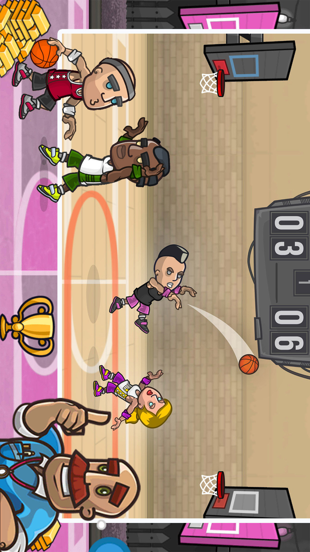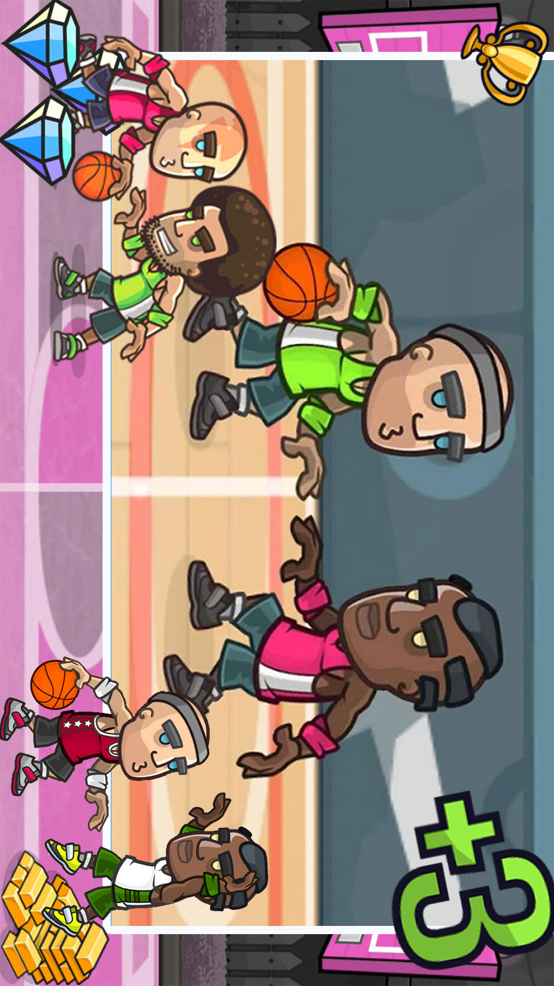 1v1斗牛、三轮争霸、 自由投篮、三分竞技、自由对抗以及赛季挑战赛等多种玩法玩法层出不穷。流畅度升级,操作灵活,充分展现你的篮球实力!