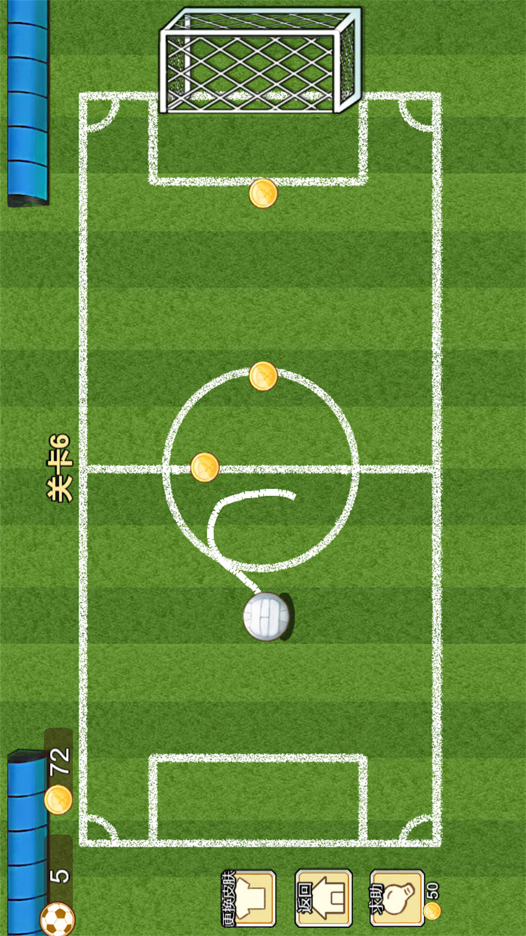 这是一款有关足球的小游戏,用手指拉动足球,就可以把足球带到指定地点,然后射门,通过关卡,每一关有有一关的精彩之处,快来体验吧