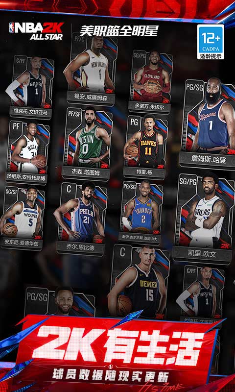 《NBA2K All Star》(美职篮全明星)是由NBA正版授权、2K团队携手腾讯联合打造的竞技篮球手游。游戏采用全新的2K引擎研发,沿袭了NBA2K系列在画面表现以及操作上的真实性。玩家不仅可以操控众多球星,还能组建梦幻球队,享受原汁原味的赛场体验。即刻开启您的NBA传奇之路! 【真实动捕 复刻经典瞬间】 我们采用了最先进的动作捕捉技术,呈现更加细腻的动作细节,每一个转身、每一次跳跃,都如同亲临现场,感受球员们独一无二的风采。最新引入超过2万个运球动画、1100个标志性球星动作,从勒布朗的强力突破到库里标志性的三分庆祝,让每个瞬间都成为传奇的一部分。 【极致建模 细节肉眼可见】 最新的球员模型,基于真实数据精心打造,超过600名球员真实动补、6万套球员动画,无论是肌肉线条还是面部表情,都达到了前所未有的逼真程度,让您仿佛置身于真正的NBA赛场。 【全新徽章 赛场天赋尽显】 最新的徽章系统,让您能够根据自己的游戏风格选择适配徽章的球星,无论是得分高手还是全能后卫,都能在球场上留下自己的独特印记。 【创新操控 拼实力放肆玩】 除了经典操作之外,为了还原了主机玩家的手柄体验,我们配备了全新的平台操作模式,不仅让游戏画面得以最大化展现,也保留了经典操作手感,释放更多操作可能,让您在指尖演绎篮球艺术。 【丰富战术 局势瞬息万变】 拥有超过1300个真实球队战术,包括现役30支球队全套战术,以及多套经典历史球队的战术,并将随着赛季进行持续更新。 【多样玩法 经典赛事重现】 除了经典的王朝模式、街头模式和经理人模式之外,我们还结合现实加入了全新的美职篮联赛玩法以及经典复刻玩法,在美职篮联...展开收起