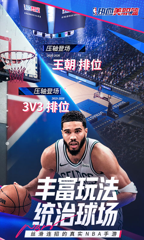 《热血美职篮》是一款由NBA官方正版授权、腾讯光子工作室群倾力打造的篮球实时竞技手游。海量NBA球星,任你选择;3V3、王朝、经理人模式等多种特色玩法,丰富乐趣;游戏采用先进动捕技术,采集球员真实数据,完美复刻专属动作和技能,高度还原NBA赛场及球星形象。通过多维战术模拟,还原经典战术,提供更多的的战术配合。打篮球,玩真的!