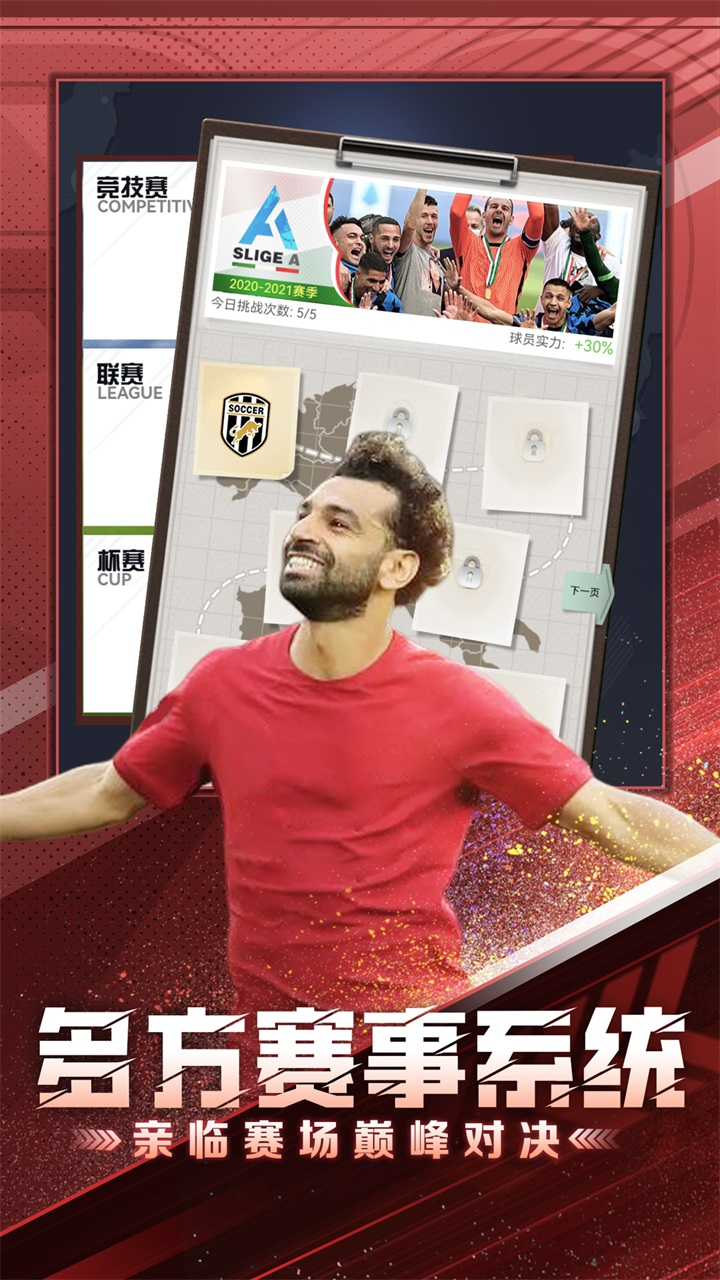 《巅峰冠军足球》以现实足球竞技为题材,通过带领球员进行比赛来提升自己俱乐部的实力。上阵自己最得力的球员,组成一场十一人的竞技游戏,不断挑战强队,在体育竞技中提升球员实力,在热血中培养默契,体验最真实的足球俱乐部经营。踏入球场,热爱运动,一起来享受这份最纯正的足球乐趣吧!