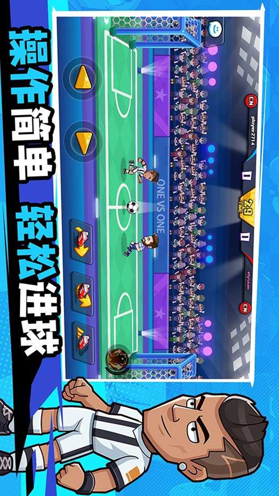 一款的精彩的竞技对抗玩法的手游,这款游戏以足球为主题,在这里玩家可以自由选择喜欢的球员,在这里开启一对一竞技,在球场上施展各种各样的炫酷技巧,实现进球赢得胜利,还能不断提高属性和等级,在这里尽情感受足球的乐趣。