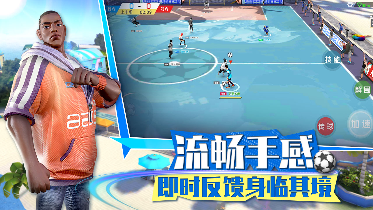 4V4真人实时竞技,支持8人及以下任意人数比赛,随时随地、劲爽游戏,赢取街头绿茵比赛胜利!